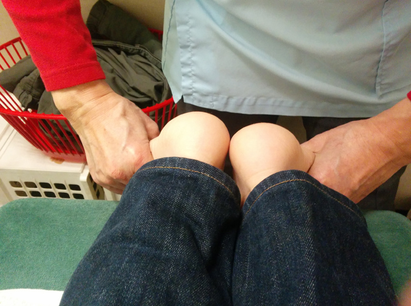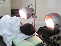 治療器を患部に当て、身体の内部からの治療を施します!!