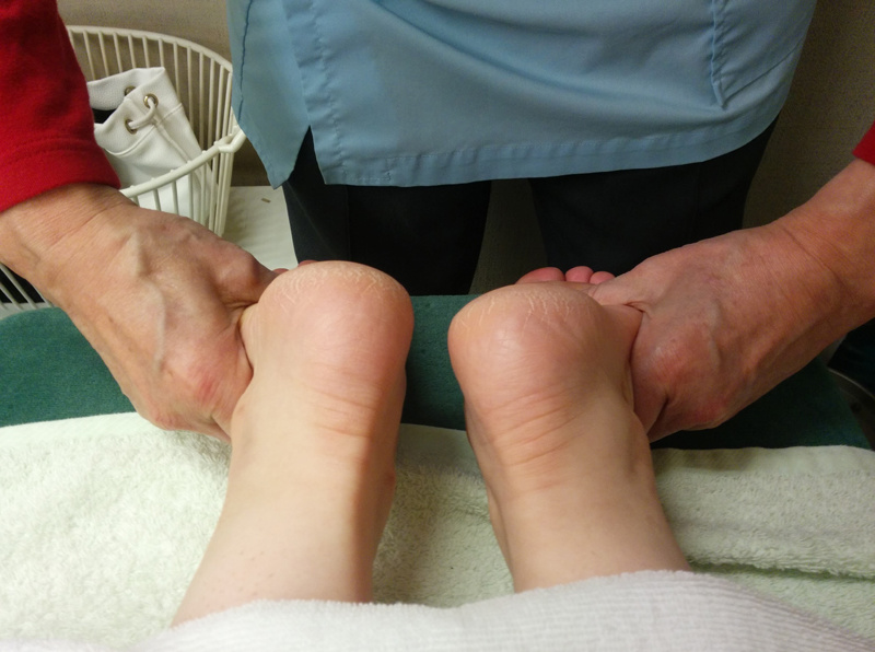 治療器を患部に当て、身体の内部からの治療を施します!!